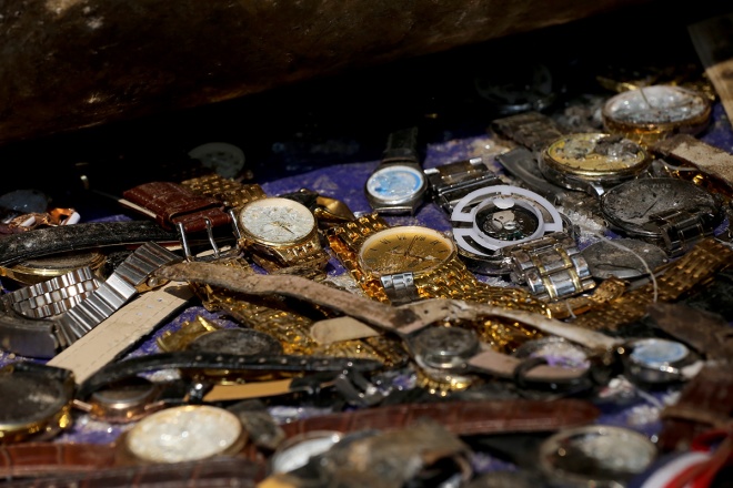 ➤ 216 chiếc đồng hồ giả thu gom từ chương trình “Thẩm định đồng hồ” đã bị tiêu hủy bằng cách xe lu cán qua.